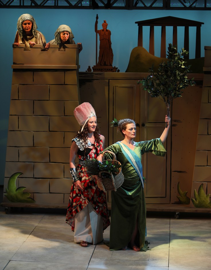 Director Lois Anderson‘s play-within-the-play centres on Lysistrata (Luisa Jojic) and her Grecian revolutionaries who band together to deny their warrior men carnal pleasures until they sign a peace treaty to end the Peloponnesian War. The “play-thrown-together-at-the-last-moment” set up is entertaining if strained at times. There are a few scenes that drag on past their due date, and an audience participation scene that is, well, a little much.